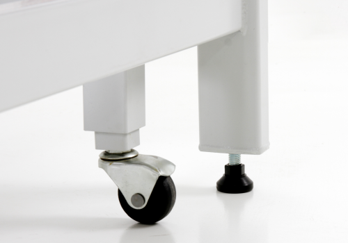 Dilengkapi dengan roda yang dapat diangkat dan mekanisme pengunci sentral untuk memudahkan mobilitas produk