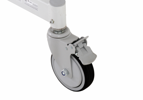 Castor roda tunggal Ø5" memberikan kemudahan dalam pemindahan bed, 2 castor dilengkapi dengan pengunci