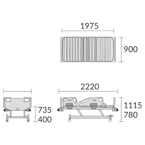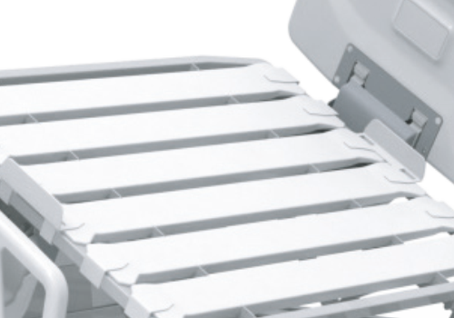 Dengan ketinggian 220 mm di atas permukaan kasur (ketebalan kasur maksimal 100 mm), pengaman samping memberikan perlindungan bagi pasien dari risiko terjatuh. Perawat dapat mengoperasikan pelindung samping hanya dengan satu tangan.