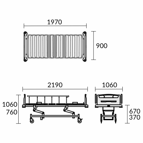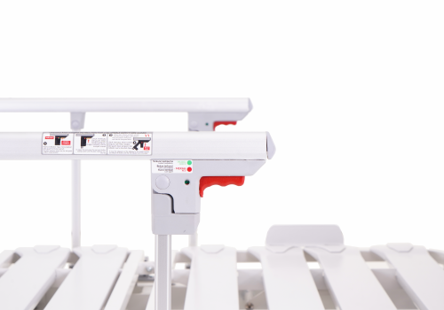 Pengaman Samping untuk keamanan pasien mudah dioperasikan, dapat dilipat, dilengkapi dengan sistem pengunci sekali sentuh